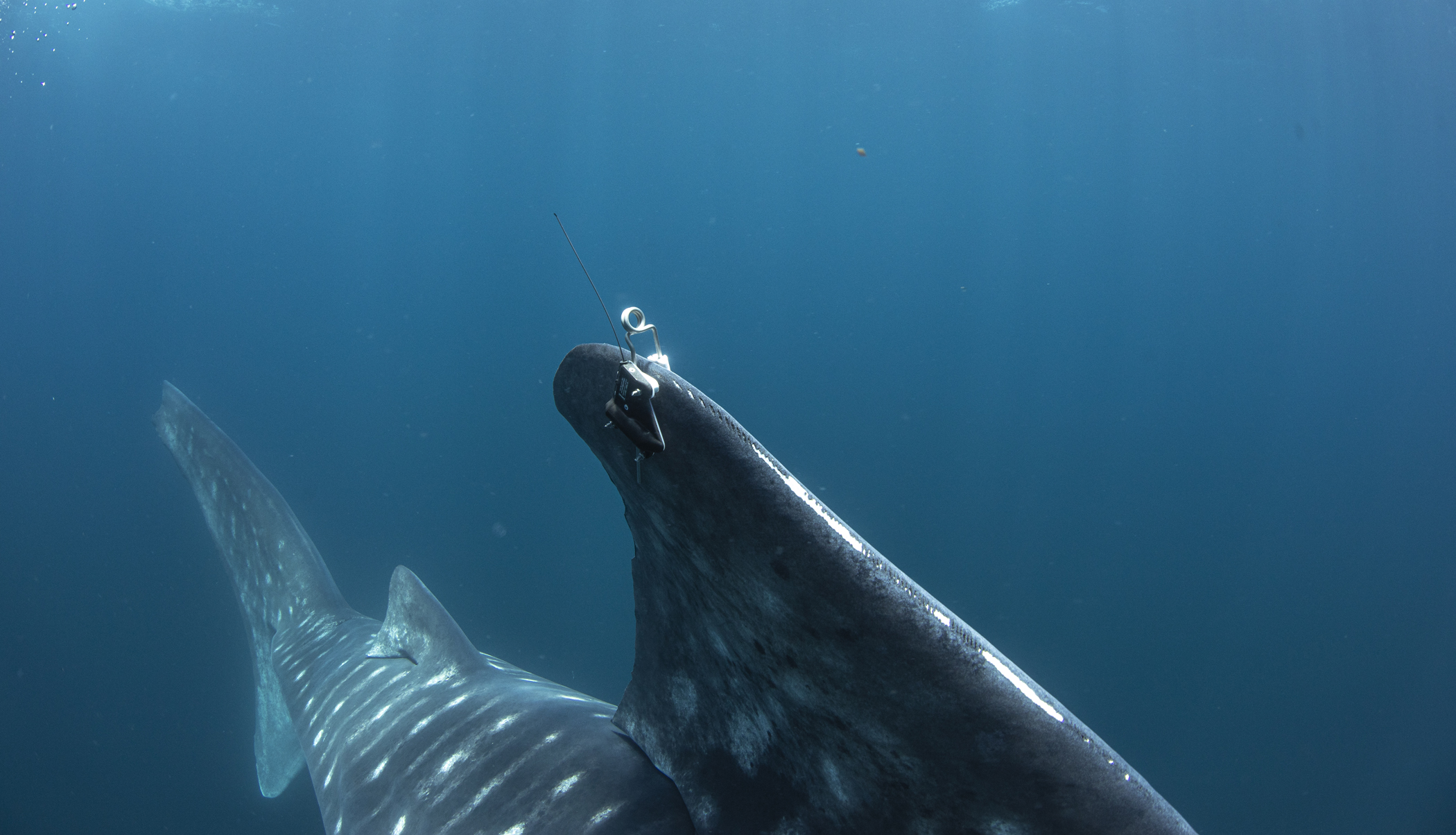 our team was dwarfed by the size of these huge fish… the smallest we encountered was 11m, cruising along the surface and patiently allowing us to jump in the water, swimming as fast as we could vs the whale sharks cruising speed, while we placed the tags, hung on and tried to get some blood samples and then swim up for a quick breath of air before heading back down to try again. Exhausting but rewarding work and hopefully the satellite tags are going to give researchers a lot more information about where these animals head off to once they leave the bay and thus, help to improve and enforce their protections.